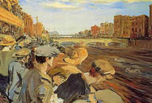 And there's hundreds of the mad buggers, swimming the Liffey, and no doubt they'll all be suffering some kind of intestinal nightmares tomorrow. Still, it was fun to watch the Jack Yeats painting come to life. And the guys leaping off the Ha'penny Bridge are actually living out a fantasy I've often had crossing it.