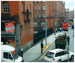And back, passing the Olympia and walking through the Castle, you know when you arrive at Tailors Court by the smell. The drain out the front that's been leaking, not just water now, tissues, shit, floating down past the Napper Tandy. I'm amazed that it's not fixed, that no-one else rings the Dublin Corporation. Still, having both a shit-spilling drain and the kids from Swifts outside your window is much the same thing.